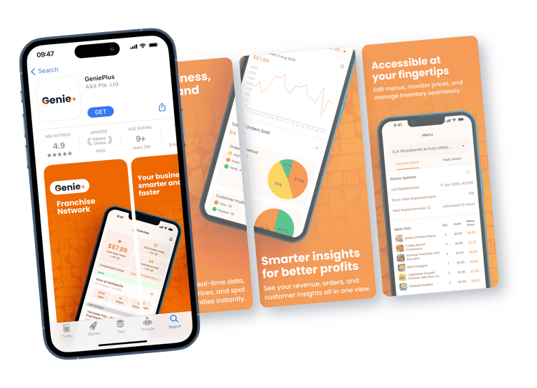 Track sales, performance, and inventory anytime with our franchise management app, making InstaChef one of the easiest franchises to run in Singapore.